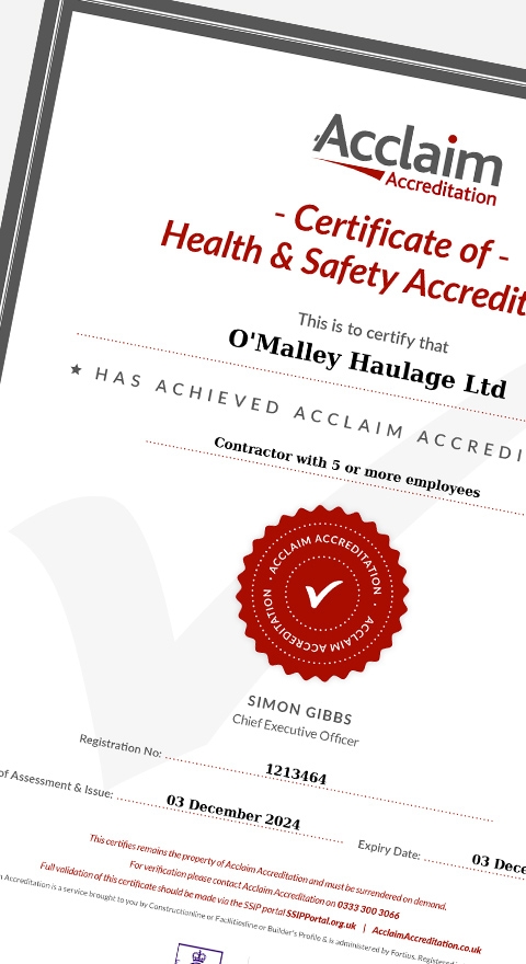 "Coinford have worked alongside O'Malley Haulage as a valued part of our supply chain for over 15 years. Predominantly for muckaway, import of primary and recycled aggregates, but also skips, O'Malley consistently deliver on time and to budget. We have used them on a range of sites both within London and the home counties, and would recommend them to others looking for a reputable supplier in this sector."